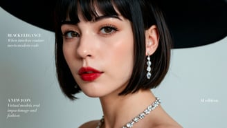 L’attenzione al dettaglio – dal contrasto tra sfondo e incarnato fino alla resa dei materiali gioiello – trasforma questa simulazione in un manufatto editoriale credibile e seducente, pronto per il mondo reale.