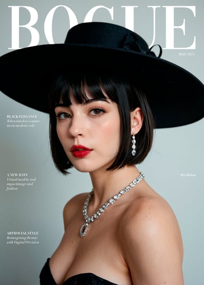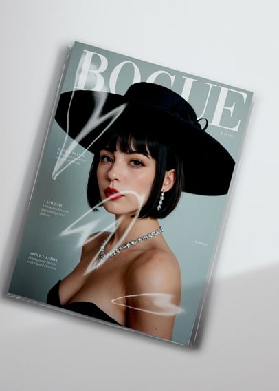 In questo progetto ho sviluppato una simulazione editoriale ispirata all’estetica delle riviste di alta moda, in cui Aya, avatar generato con intelligenza artificiale, viene presentata come protagonista di copertina.